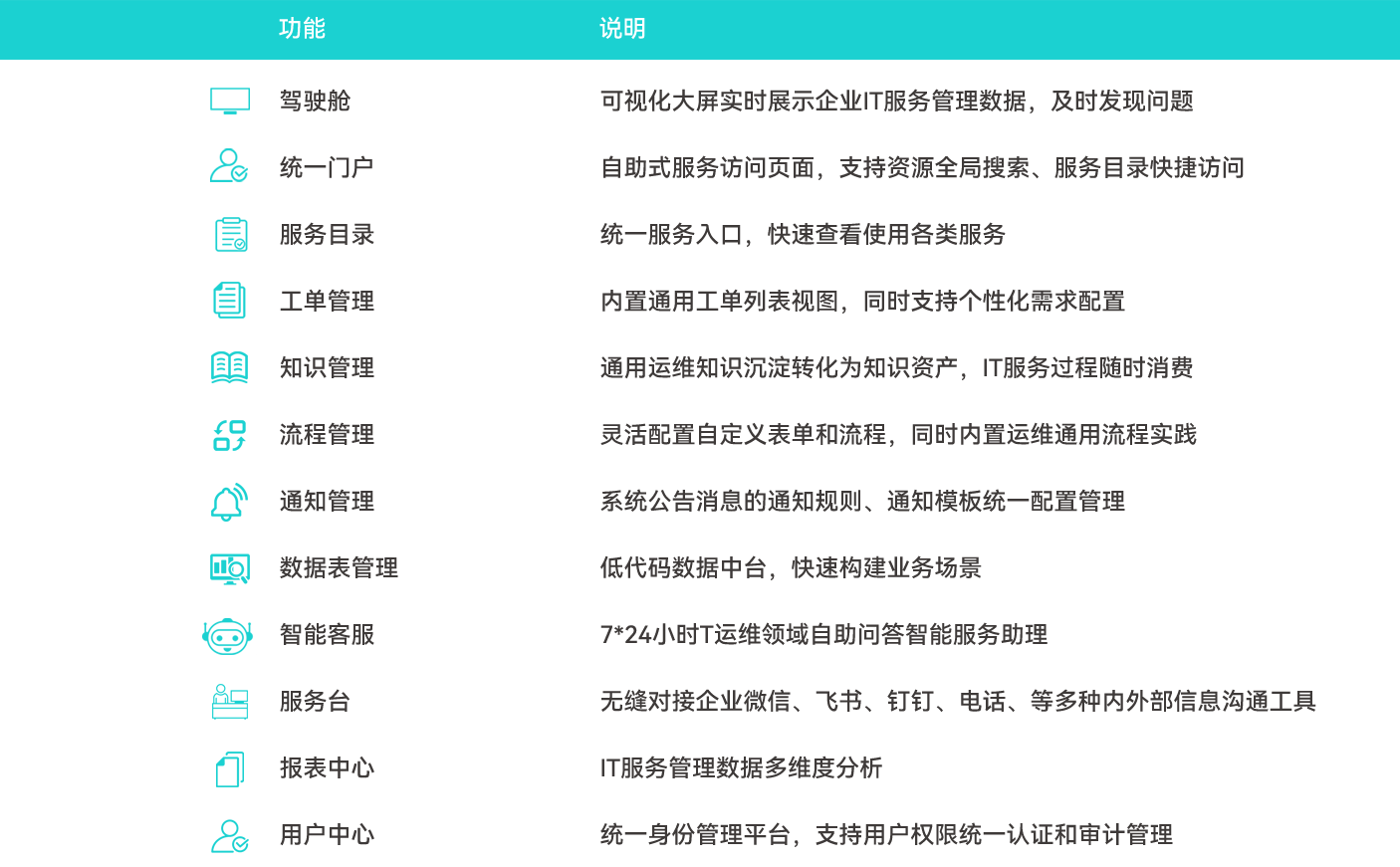 支持服务目录的定义和统一管理,为企业的服务提供统一的、一致的、准确的信息源,从而为其他服务管理活动提供支撑